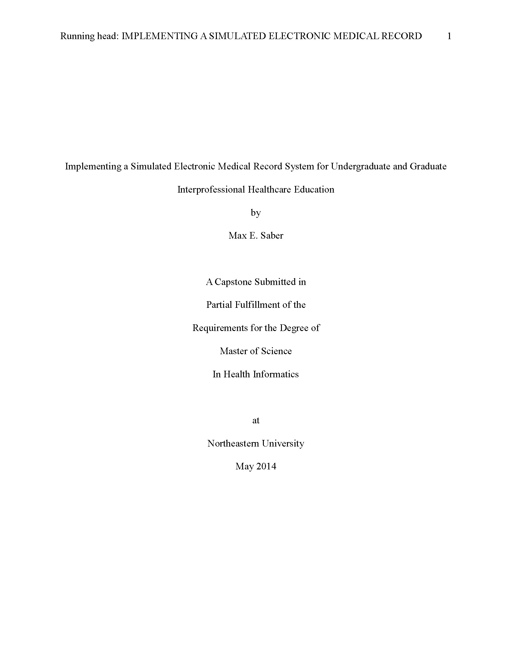 The traditional standard of educating healthcare professionals separate from one another is no longer conducive to the nature of healthcare delivery. Interprofessional healthcare education has emerged and is quickly gaining acceptance as the standard framework for educating healthcare professionals. Studies show that the traditional structure of educating a healthcare student in “silos” can lead to the development of assumed perceptions of their colleagues in other health professions (Ateah et al., 2011). Interprofessional healthcare education fosters the communication skills necessary for the student’s success in their chosen career path. In addition to the development and implementation of an interprofessional healthcare education seminar, the addition of an electronic medical record system to this seminar will add a layer of realism to the experience. Through the seminar, students will utilize modules of the electronic medical record system to complete documentation and tasks responsible of their job role while developing therapeutic care plans for weekly patient cases.