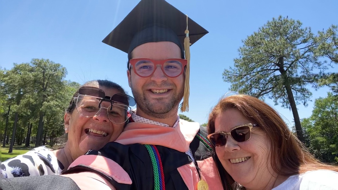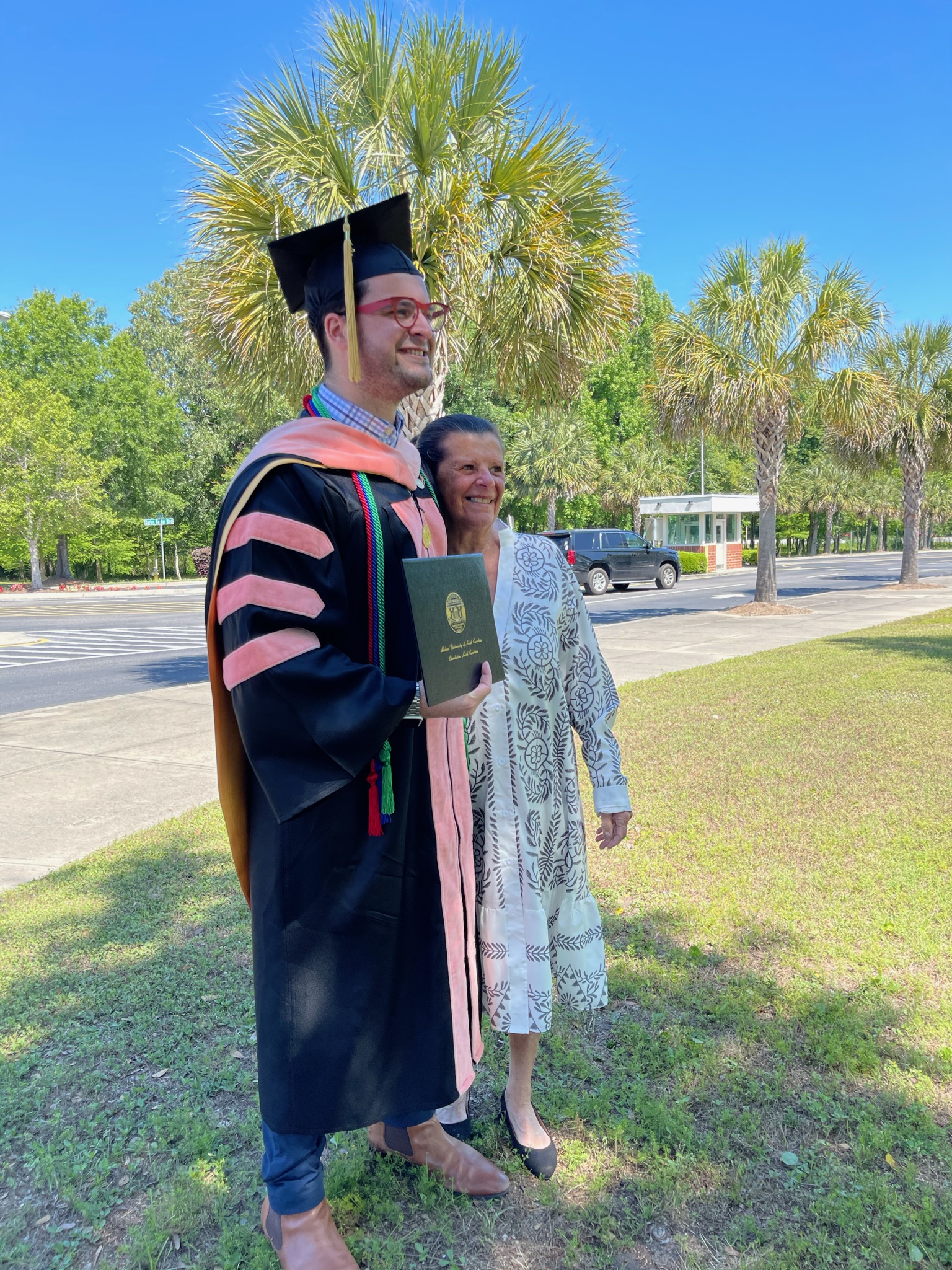 Max with his academic regalia post-commencement as a freshly minted Doctor!