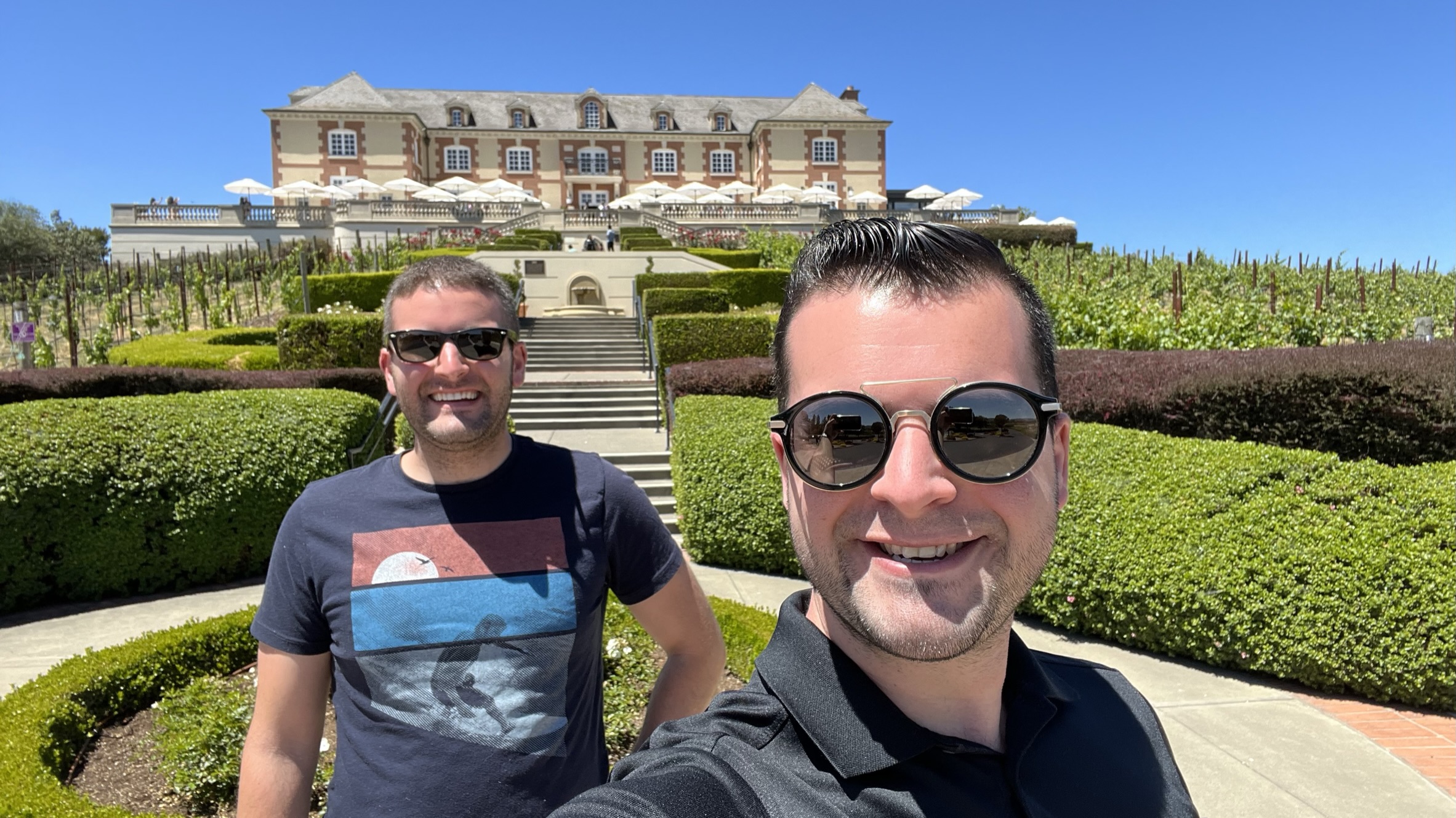 June: I was finally able this year to go visit by best friend from college in San Francisco. When he told me its been five years since we’ve last seen each other in person, I told him to shut up. Of course Jared, his partner Howe, and I had to visit some of the wineries in Sonoma County while I was in the area. Here we are at Domaine Carneros, a winery in Napa Valley.