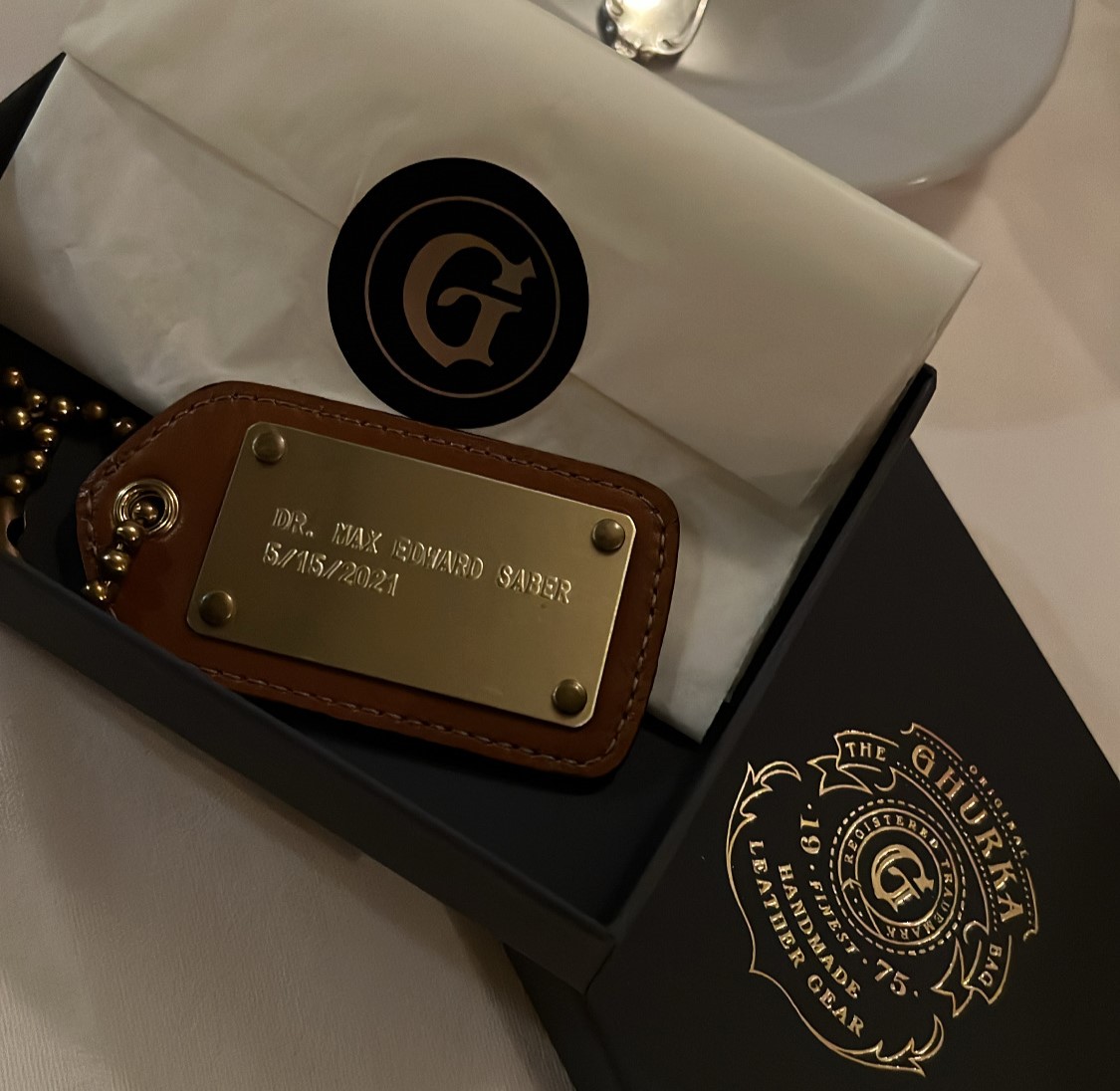 Dominic also surprised me with a new Ghurka leather and brass tag for my briefcase, I’m glad he remembered I finished by doctorate a year ago already, I sure didn’t!